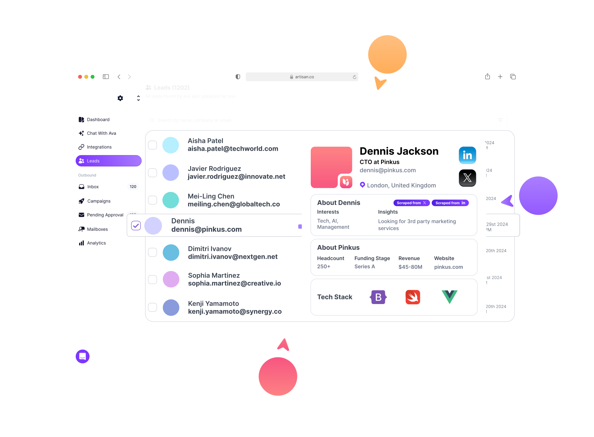 “Before Artisan, our team spent far too much time on cold outreach. Ava has significantly freed up our team’s bandwidth.”